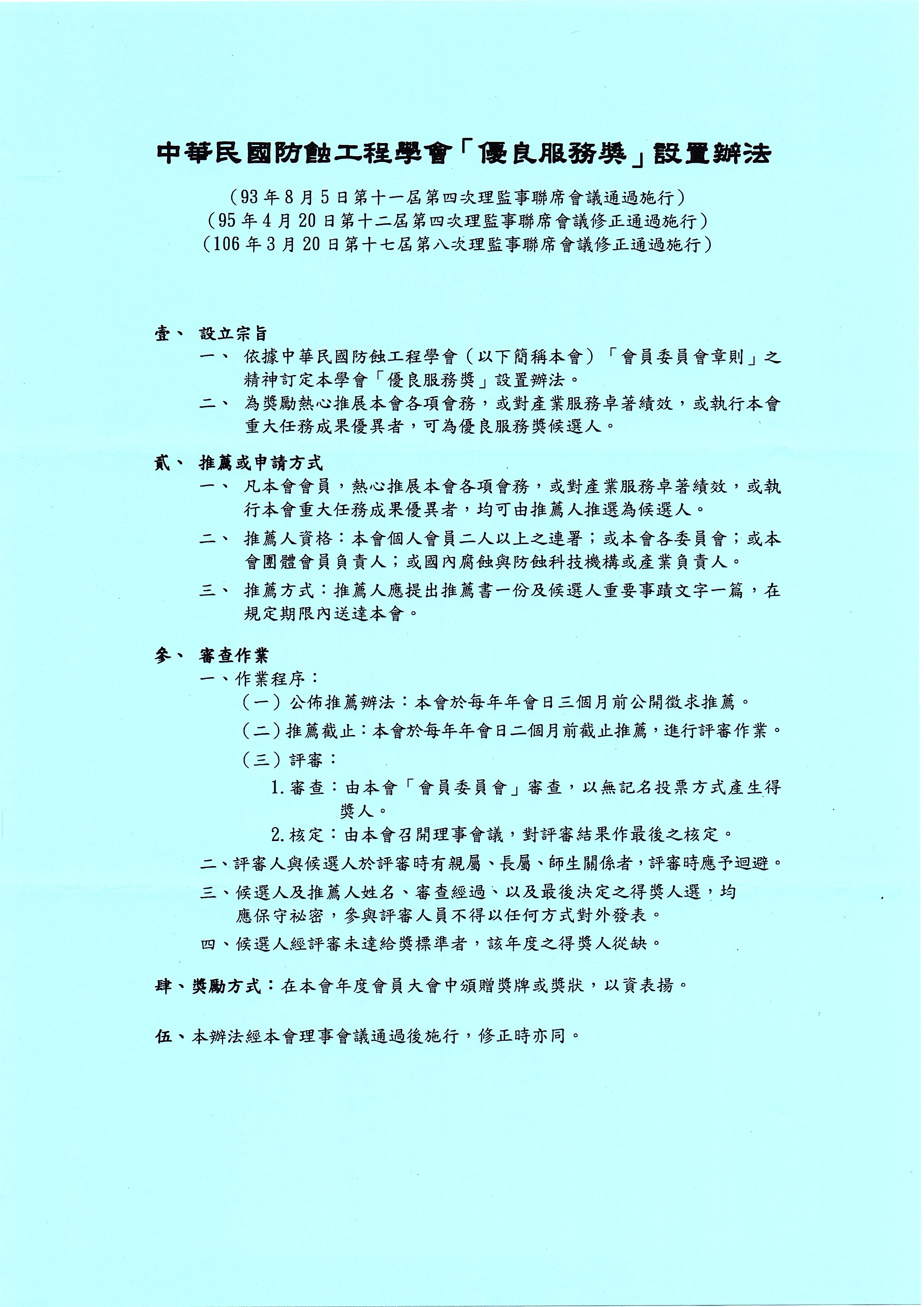 Download this file (中華民國防蝕工程學會優良服務獎設置辦法.jpg)中華民國防蝕工程學會優良服務獎設置辦法.jpg804 kB